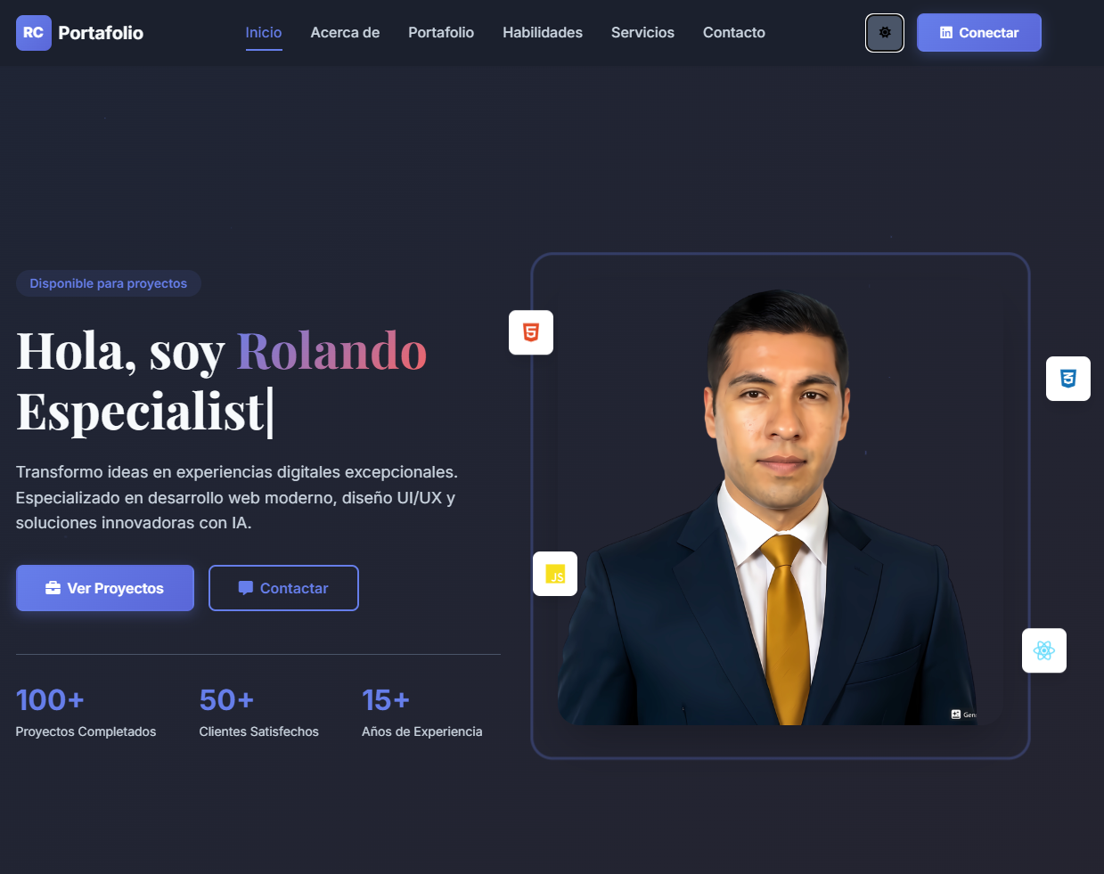 Sitio web personalizado con galería de proyectos organizada por categorías, descripciones detalladas de cada trabajo con imágenes o videos, sección "Sobre mí" que cuenta tu historia profesional, formulario de contacto directo, enlaces a redes sociales y CV descargable. Todo con diseño moderno, elegante y completamente responsive.